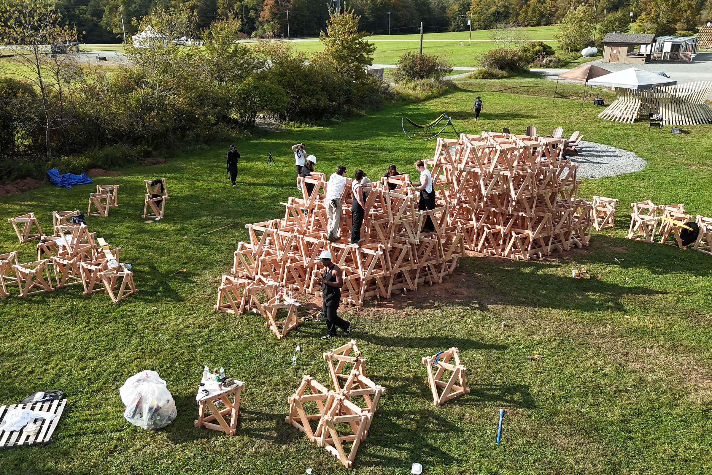BuildFest is Bethel Woods’ annual Art & Architecture Festival where students, faculty, and designers come together on the historic Woodstock grounds to design and build large-scale, interactive installations. Over several days, teams from universities across the country collaborate to push ideas in sustainable building, craftsmanship, and creative expression—blending art, architecture, and community in a unique public experience. Installations remain on view for festival attendees and the wider Bethel Woods community.