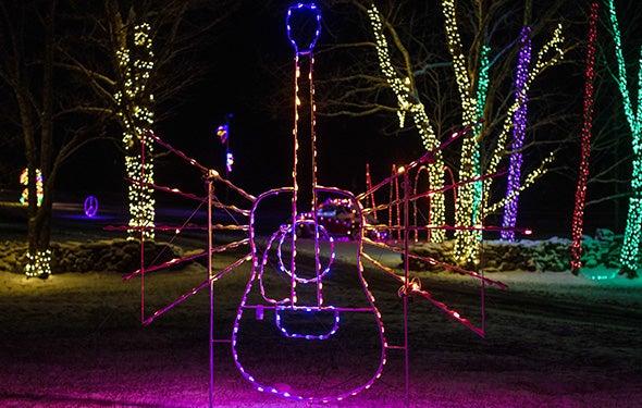 Starting on Black Friday, experience the sparkling brilliance of our light show, winding through 1.7 miles of the beautiful Bethel Woods grounds from the comfort of your car. Just turn off your headlights and follow the magical glow.